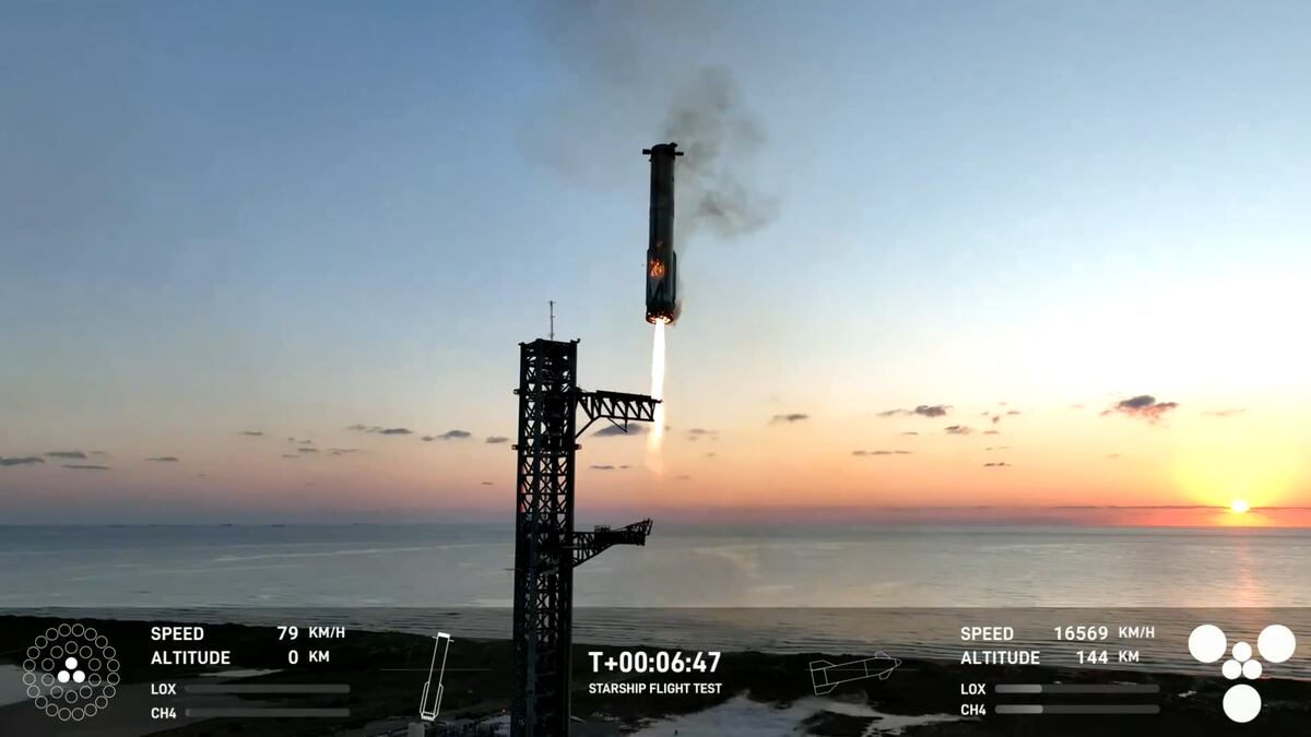 El quinto vuelo de prueba de un megacohete Starship despegó este domingo con éxito desde la base de SpaceX en Boca Chica (Texas, EE UU), a las 14:25 hora peninsular española. Tras el éxito completo del anterior ensayo, el cohete espacial más grande y potente de la historia afrontaba hoy un reto clave en su camino para cumplir su promesa de ser reutilizable. Y siete minutos después del despegue lo logró. Después de haber puesto a la nave en una trayectoria suborbital, el propulsor Super Heavy regresó a la base y fue cazado en el aire por una gran pinza instalada en la torre de lanzamiento. Era la primera vez que se intentaba esa sofisticada maniobra.