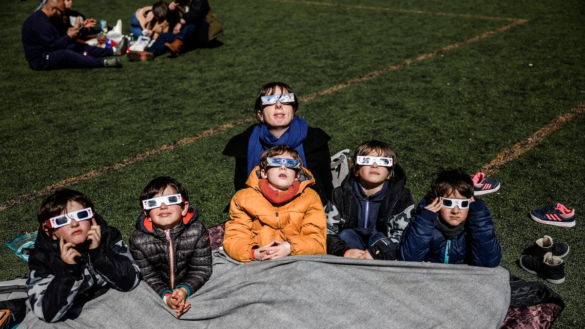 Unos minutos después del mediodía, el eclipse comenzó a menguar en Madrid. “¡Mira, mamá! Ahora, que se va”, le dijo Mael, de siete años, a Berta Domínguez, su mamá. La familia viajó desde Gijón. “Ha sido una experiencia demasiado maja. El año que viene seguro repetimos”, apostilló la mujer.