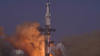 La enorme estructura dibujó una estela limpia y se elevó sobre el golfo de México (que ahora el presidente Donald Trump, amigo de Musk, ha ordenado que se rebautice como golfo de América) hasta desaparecer en el cielo. Bastaron unos ocho minutos para que en la retransmisión en directo, cortesía de SpaceX, se escucharan los primeros aplausos de los ingenieros de la compañía, aliviados al comprobar que esta vez el cohete no explotaba en mil pedazos inmediatamente, como en las dos ocasiones anteriores.