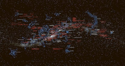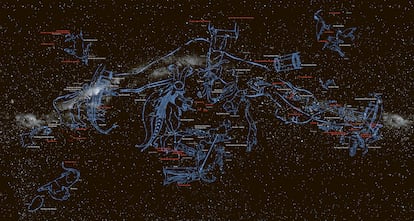 En 1919 se fundó la Unión Astronómica Internacional (UAI) la única autoridad mundial reconocida para bautizar estrellas, constelaciones, lunas y planetas. Tres años más tarde, definió oficialmente las 88 constelaciones que cubren todo el cielo visible desde cualquier punto de la Tierra. En 1930, la UAI estableció los límites oficiales de cada constelación, trazó las fronteras del mapa celestial. El cielo está dividido en estas 88 zonas definidas, no hay margen para nuevos descubrimientos visibles desde la Tierra, ni tampoco para plasmar sobre ellos nuevas historias y mitos. Con potentes telescopios, poco a poco, se van descubriendo nuevas estrellas, galaxias o cúmulos. La UAI los cataloga con nombres técnicos como VVVX 03 o DELVE 6. Nadie inventa historias sobre ellas, porque no pueden apreciarse a simple vista.