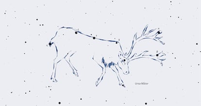 “Lo más bonito fue constatar que cada cultura veía cosas completamente distintas en el mismo cielo”, comenta el autor. Explicar las diferencias es fácil: primero, dependiendo de nuestra posición en la Tierra, vemos diferentes porciones del cielo. Hay constelaciones exclusivas del hemisferio norte, como la Osa Mayor, Casiopea o Cefeo. Otras solo se ven en el sur, como la Cruz del Sur o Centauro. Y hay un tercer grupo de constelaciones cercanas al ecuador, como Orión o Sagitario, que son compartidas por los dos hemisferios, pero se ven en un sentido distinto, casi del revés, según donde las mires.