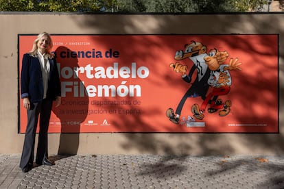 Pero, para alcanzar ese objetivo, refleja realidades contemporáneas que, en muchos casos, tenían que ver con la ciencia, como los trasplantes, los virus, la edición genética, la biodiversidad, la evolución, la prehistoria. Todo tenía cabida en el disparatado mundo de Mortadelo y Filemón. “Lo incorpora porque es nuestro día a día, lo que nos permite progresar como sociedad”, explica la vicepresidenta del CSIC, que añade: “Todo eso permea”.
