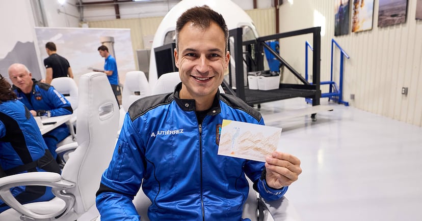 El New Shepard abandonará la Tierra desde el oeste de Texas, con una ventana de despegue que se abre a las 08:30 horas CST (15:30 hora peninsular española). Tras algo más de 3 minutos en los que los viajeros disfrutarán la ingravidez, el grupo regresará frenado por tres paracaídas. Junto a Gutiérrez viajarán otros cinco tripulantes. La doctora Laura Stiles, directora de operaciones de lanzamiento de New Shepard; Tim Drexler, director ejecutivo de Ace Asphalt; Linda Edwards, una ginecóloga-obstetra jubilada; Alain Fernandez, promotor inmobiliario e inversor internacional; Jim Hendren, coronel retirado de la Fuerza Aérea de EE UU; y Andrew Yaffe, emprendedor en la industria del reciclaje.