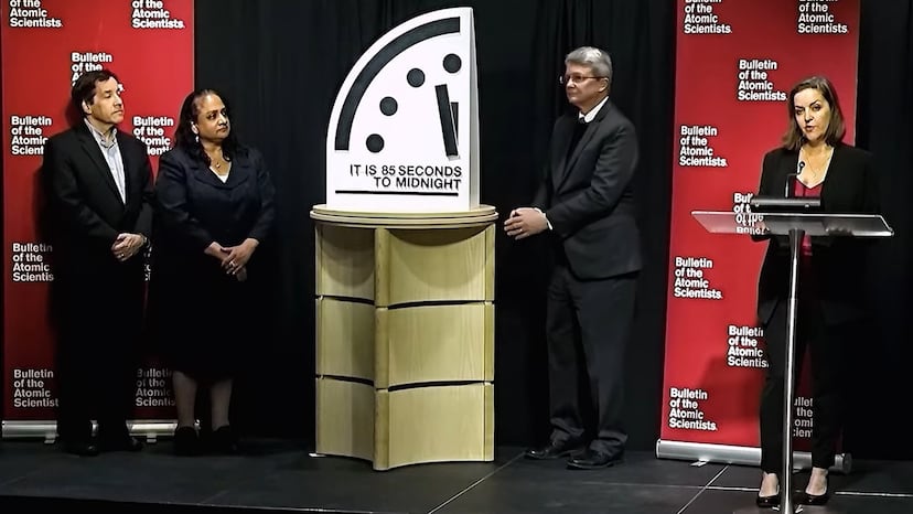 La humanidad se acerca al abismo empujada, principalmente, por la deriva del presidente de Estados Unidos, Donald Trump, líder del negacionismo del cambio climático, promotor de energías nucleares caducas o derivadas del petróleo y detonador de nuevos conflictos, como la intervención militar en Venezuela y las amenazas a Groenlandia e Irán. Estas nuevas espuelas de la autodestrucción se han unido al genocidio en Gaza y a la guerra en Ucrania, entre otros conflictos. Con este reparto sobre el escenario mundial, los responsables del Boletín de Científicos Atómicos, que ajustan cada año el simbólico Reloj del Apocalipsis (Doomsday Clock), han situado este año el fin del mundo a solo 85 segundos, cuatro menos que el pasado año y más cerca que nunca del último instante del día. Las razones son la incapacidad de los políticos para atajar los desafíos armamentísticos, biológicos, ecológicos y los creados por la IA, como la desinformación.