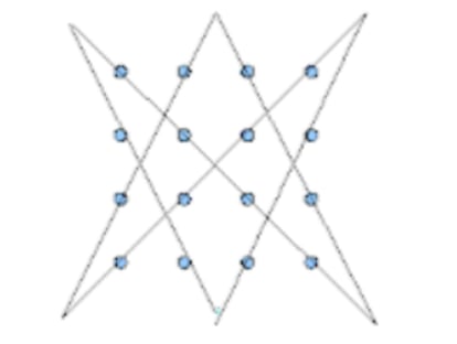 La semana pasada vimos una solución al problema de unir una cuadrícula de 4x4 puntos con solo seis trazos rectilíneos sin levantar el lápiz del papel ni pasar dos veces por un mismo trazo. He aquí otra, elegantemente simétrica y cíclica: