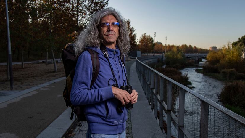 Hoy recorre un tramo del renaturalizado río Manzanares, en Madrid, cargado con prismáticos y telescopio. Como explica, esta es la mejor época del año para observar estos animales. “Las personas creen que los pájaros solo se ven en primavera y en verano, cuando en realidad son las estaciones de otoño y de invierno en las que las aves se ven más y mejor”, comente este guía de una empresa que organiza excursiones urbanas para enseñar a identificar estos animales alados a escolares.