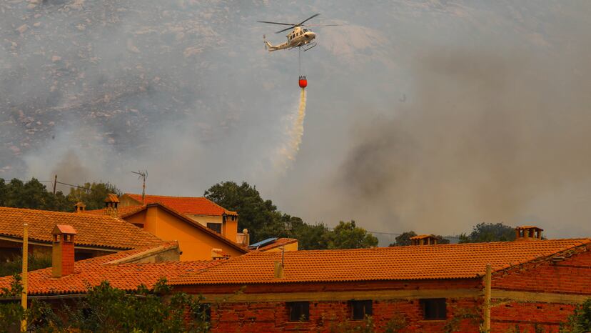 Cinco de estos aparatos, bomberos y la Unidad Militar de Emergicias (UME) luchaban contra uno de los frentes que continuaba activo del incendio que se inició en la zona de Navalacruz y Cepeda de la Mora (Ávila), el sábado, y que lleva calcinadas ya unas 12.000 hectáreas, lo que lo convierte en el más grande de España en lo que llevamos de año. Probablemente serán más. “Vivimos situaciones de mucha tensión, con las llamas muy cerca de las casas”, explica Pilar Galán, la alcaldesa de Riofrío, un pueblo que fue evacuado el domingo. A última hora de la tarde de este lunes continuaban activos dos frentes en el flanco sur, en la zona del Alberche, y el fuego seguía ardiendo.