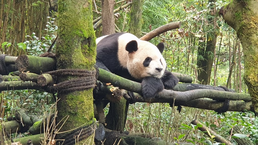 “Este es nuestro panda español; nació en Madrid”. La guía del Valle Panda de Dujiangyan, en Sichuan, en el centro de China, señala con una sonrisa al animal semidormido sobre una plataforma entre árboles: “DeDe”. Junto a su gemelo Po, el segundo panda nacido en el Zoo madrileño después del mítico Chulín, acaba de desayunar varios kilos de bambú y ahora descansa, la tarea a la que estos animales de lento metabolismo dedican la mayor parte de su tiempo. Ya cumplidos los once años –casi un cuarentón en edad humana–, lleva ocho en esta reserva de cuidado y estudio de estos mamíferos, desde que según los acuerdos de cesión dejó su ciudad natal para volver a su hogar ancestral. En el Valle Panda, parte del Centro de Investigación y Conservación sobre el Panda Gigante chino con sede en la ciudad de Chengdu, convive en semilibertad con otros nueve ejemplares.