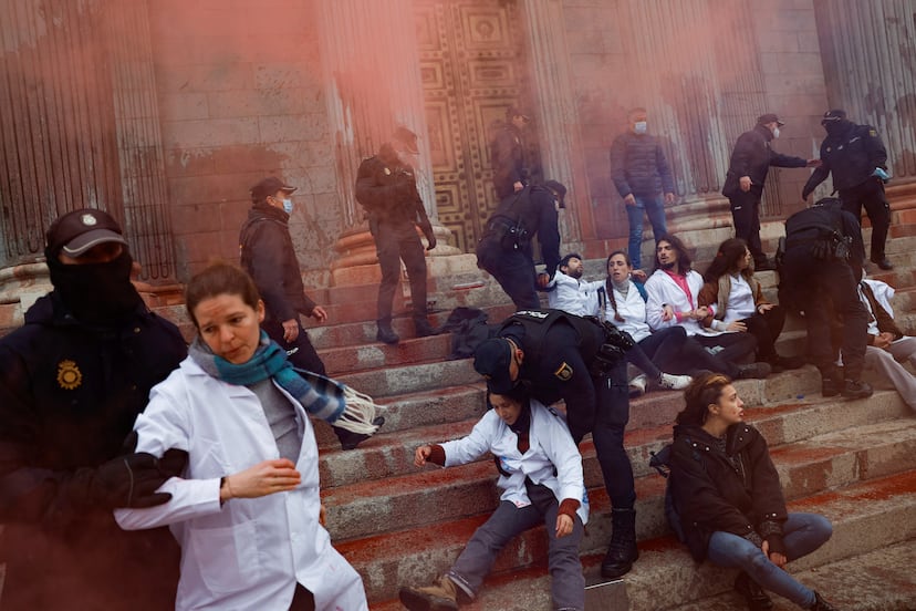 Los manifestantes, muchos de ellos vestidos con batas blancas, se han sentado frente a la fachada principal del Congreso gritando consignas como “No hay planeta B” o “Sin planeta no hay futuro”, informa la agencia Efe. Además, portaban una pancarta en la que se leía: “Alerta roja. Escuchad a la ciencia”. Hasta 11 furgones del Cuerpo Nacional de Policía han acudido al lugar para desalojar a los activistas, mientras que los servicios de limpieza han emprendido luego las tareas para quitar la pintura de la fachada.