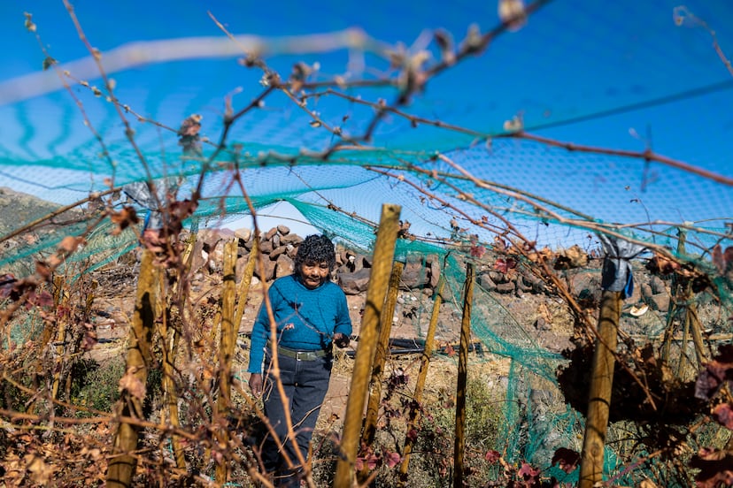 En el lugar más seco del mundo, a 3.600 metros de altura sobre el nivel del mar, un viñedo irrumpe el paisaje desértico de Atacama. La media hectárea de parra brota en la recóndita aldea Socaire, enclavada entre quebradas con vistas al salar. La campesina Cecilia Cruz, de 67 años, oriunda de la zona, recorre el suelo de arena volcánica cubierto de hojas secas. Con las manos, moldeadas por el trabajo de la tierra, coge uno de los pocos frutos que hay en el parrón tras la temporada de cosecha: “...