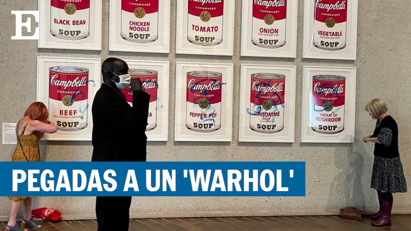 Dos activistas climáticas se adhieren con pegamento a las ‘Latas de sopa Campbell’ de Warhol en Australia