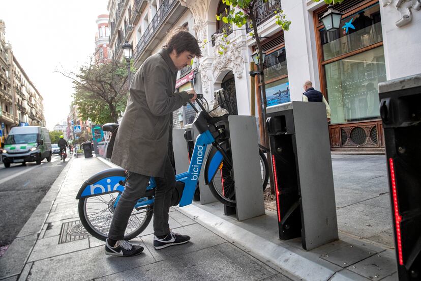 A las nueve de la mañana del jueves, la estación de Bicimad —el sistema de bicis públicas de Madrid— de la glorieta de Embajadores solo tiene tres bicis: dos tienen la luz verde (se pueden usar), pero una está en rojo (no funciona). De ellas, una tiene el sillín girado hacia atrás, un aviso en clave entre usuarios para saber que da problemas. Pruebo con la otra, que es una bici antigua y blanca; con la tarjeta de la Empresa Municipal de Transportes (EMT) se libera. Este era el único sistema que funcionaba hasta marzo: un tipo d...
