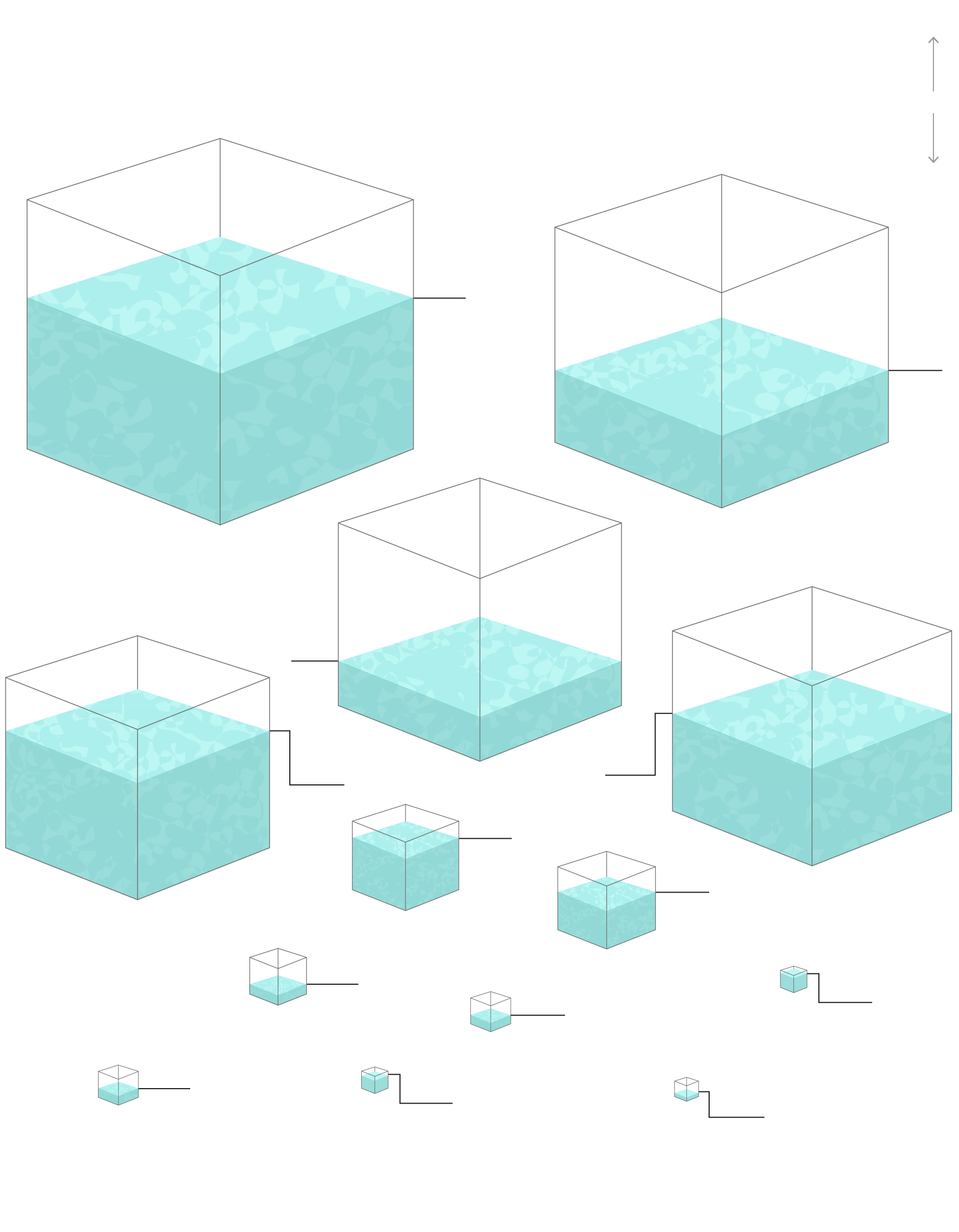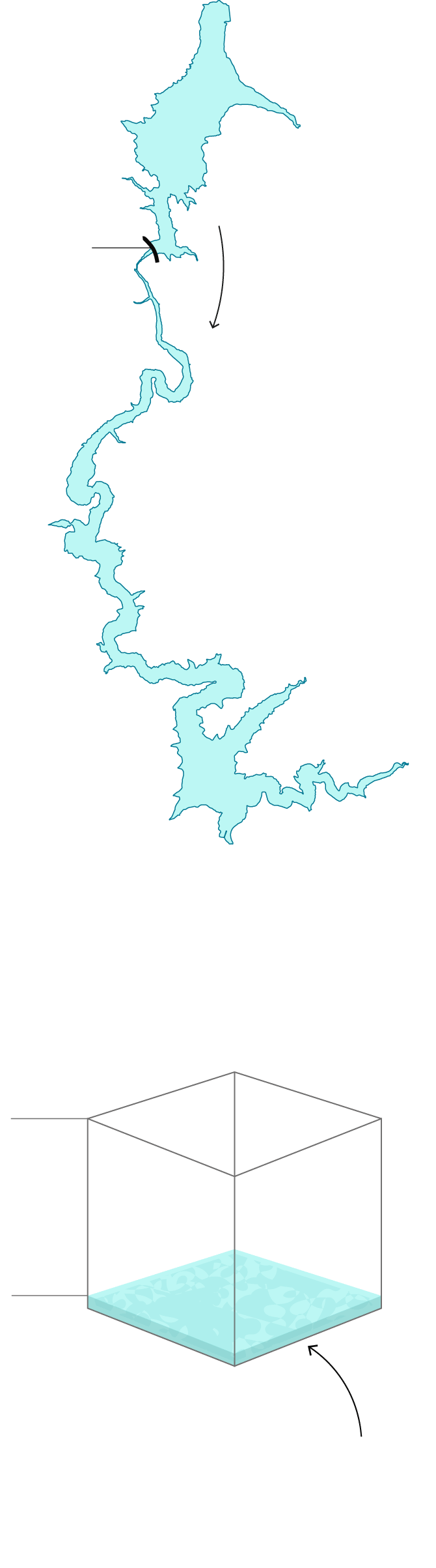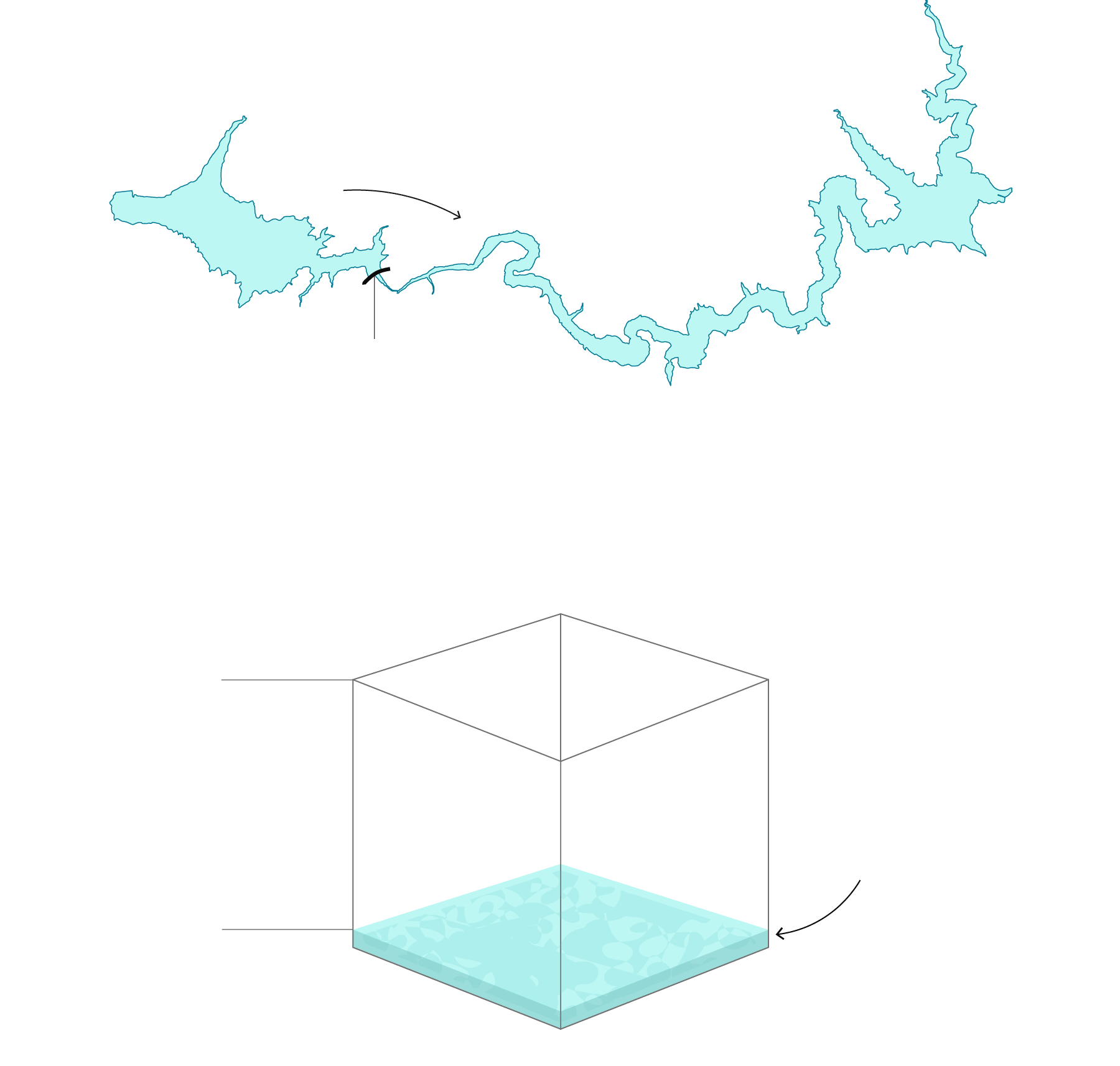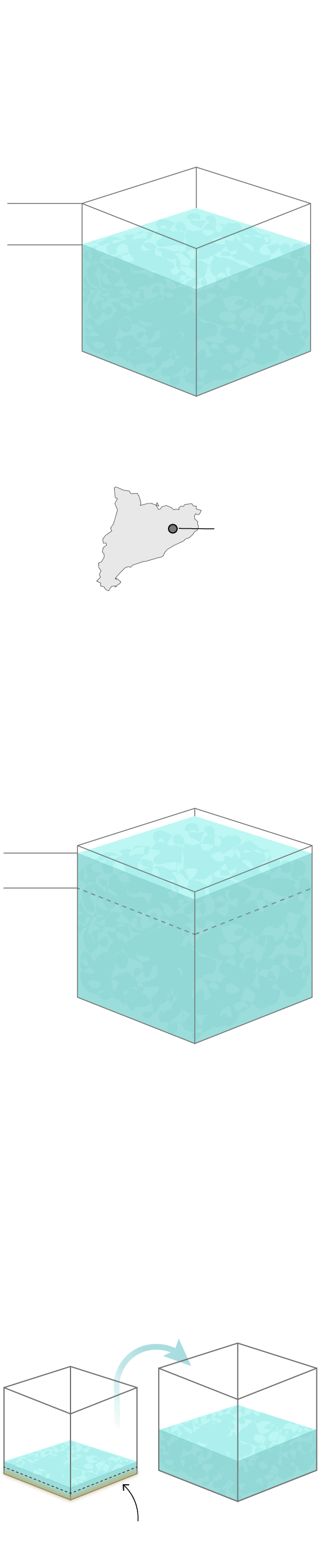 Dentro de este cubo está la cantidad de agua que normalmente alberga el pantano de Sau en el mes de abril (media 2012-2022).