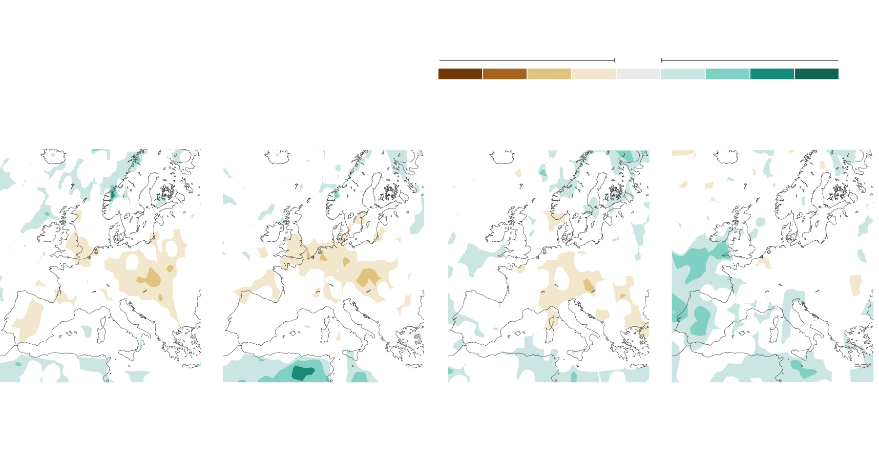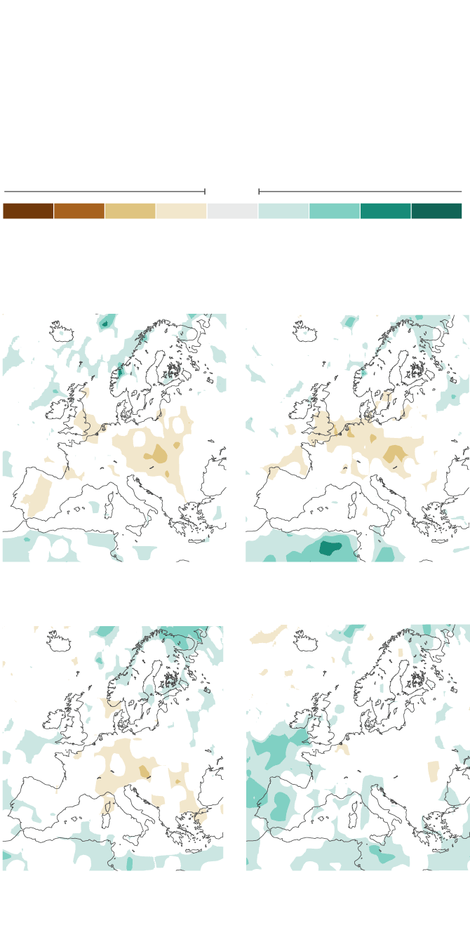Anomalías de precipitación en Europa respecto a la media de 1993 a 2016