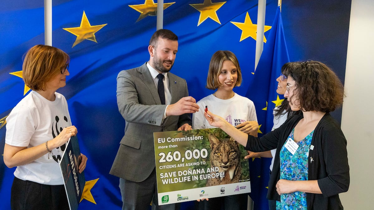 Las organizaciones ecologistas WWF, SEO BirdLife, Salvemos Doñana, Ecologistas en Acción y la plataforma ciudadana Movemos Europa han entregado este miércoles en Bruselas al comisario europeo de Medio Ambiente, Virginijus Sinkevičius, 260.000 firmas de ciudadanos del continente contra la proposición de ley impulsada por la derecha andaluza (PP y Vox) que prevé ampliar los regadíos de fresas junto a Doñana.