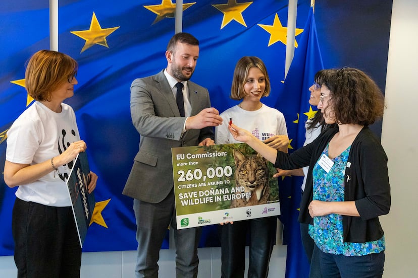 Las organizaciones ecologistas WWF, SEO BirdLife, Salvemos Doñana, Ecologistas en Acción y la plataforma ciudadana Movemos Europa han entregado este miércoles en Bruselas al comisario europeo de Medio Ambiente, Virginijus Sinkevičius, 260.000 firmas de ciudadanos del continente contra la proposición de ley impulsada por la derecha andaluza (PP y Vox) que prevé ampliar los regadíos de fresas junto a Doñana.