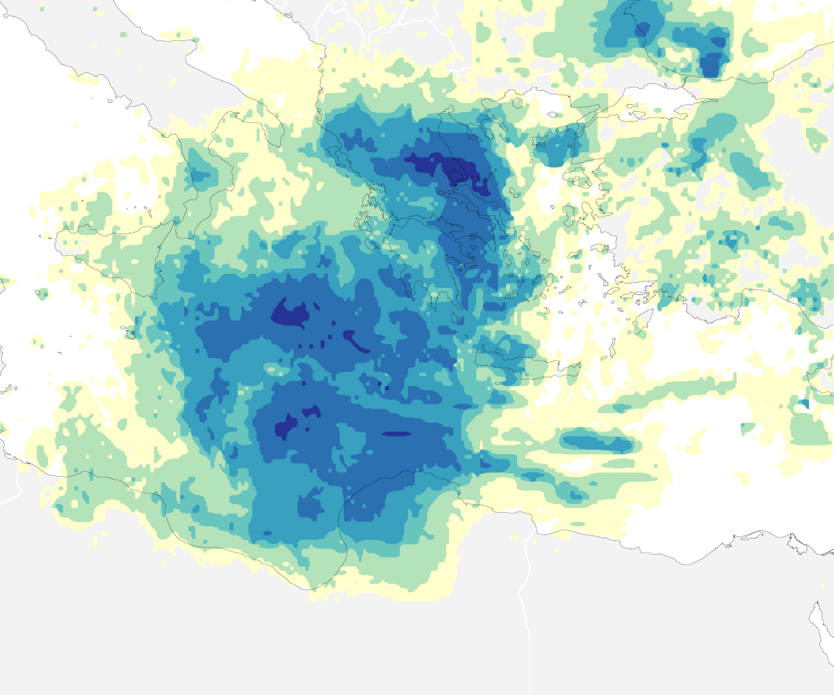 Entres los días 5 y 6 en algunos pueblos al norte de Atenas se registra más lluvia que toda la que cae en España en un año.