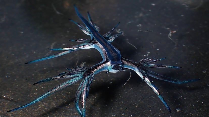 El dragón azul, la espectacular babosa marina que cabe en la palma de la mano y cierra playas al baño