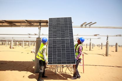 En el borde del desierto de Tengger, en el norte de China, el silbido del viento se cuela entre las aspas de un ejército de turbinas eólicas, mientras el sol cae a plomo sobre un mar de paneles solares. Desde ese remoto paisaje de luz y arena, en la región autónoma de Ningxia, arranca una vía eléctrica que atraviesa montañas, mesetas y valles hasta llegar a Hengyang, en el corazón industrial de la provincia de Hunan, en el sur. A lo largo de 1.616 kilómetros de cables y atalayas de acero viaja parte del flujo eléctrico que mantiene encendido el país: la infraestructura de ultra alta tensión (ultra high voltage en inglés, UHV) con la que China busca blindar su red frente a apagones y redibujar su mapa energético en plena carrera hacia la transición ecológica.