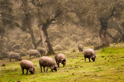 José Manuel Benítez es un ganadero ecológico de Alájar, en la Sierra de Huelva, con 50 vacas y cerca de 35 cerdos ibéricos, en extensivo, que se alimentan de pastos y de bellotas en el campo. Desde pequeño cuando empezó en esto con su padre ha sido testigo de unas cuantas sequías, pero no puede olvidar la de 2022, que afectó a cerca de un tercio del país, de mayo a julio. “En mis 58 años, fue la primera vez que tuvimos que echar de comer a los animales desde la primavera, que es cuando más comida suele haber en esta zona, hasta el otoño siguiente”, comenta. “No había comida y tampoco teníamos forma de comprarla, pues además se especuló mucho con la paja, el heno y los piensos, los precios se dispararon”. “Fue un año muy duro, de los peores que he conocido (...) Tampoco había agua, hubo gente que tuvo que vender el ganado porque no tenía cómo darle de beber o no le compensaba económicamente pagar camiones cisterna aparte del pienso”, recuerda.