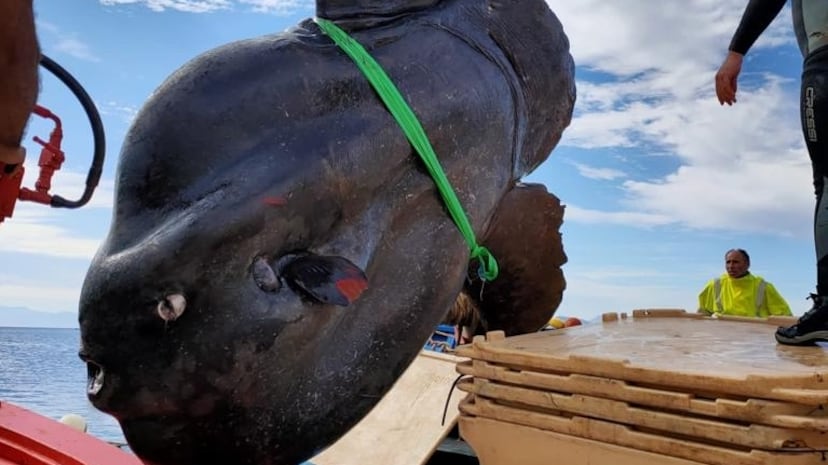 Un enorme ejemplar oscuro de pez luna dejó la semana pasada perplejos a los biólogos y pescadores en la almadraba de Ceuta. Había caído en las redes y antes de liberarlo, lo midieron y extrajeron muestras de su ADN: casi tres metros de boca a cola y 3,20 de ancho. Intentaron pesarlo, pero la báscula no aguantó porque esta solo calculaba hasta los 1.000 kilos, que el pez sobrepasó con facilidad. Esta especie es el pez óseo más pesado del planeta y en España se han localizado muy pocos ejemplares en la última década, ninguno de estas dimensiones, según los expertos.