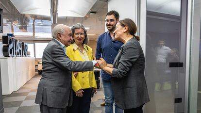 En esta última visita, Andrés Díaz recordó como grandes momentos de la historia del periódico el tratamiento del intento de golpe de Estado del 23-F, el de la victoria de Felipe González en las elecciones generales de 1982 o el mismo nacimiento de EL PAÍS: “Era la primera vez que uno veía que la democracia estaba llegando a España”, comentó. Es tal el amor que siente Díaz por este diario que en la conversación con José Nicolás e Ixone Arana, dos de los redactores más jóvenes de la Redacción, la pareja recordó que, recién casados, llegaron a un acuerdo: él se levantaría cada mañana bien pronto para recoger el periódico de su buzón —”si no, me lo quitan”, le dijo— y luego le llevaría el desayuno a la cama. “Y así ha sido. Lo sigo haciendo”, indicó.