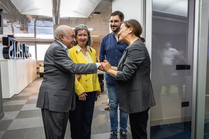 Como en su primera visita, Díaz y Lantada también asistieron al proceso de elaboración del periódico. La directora del diario, Pepa Bueno, les invitó a la reunión en la que se decide la primera página, junto a todos los redactores jefes de las diferentes secciones. Camino a esta sala, en el centro de la Redacción, los periodistas de EL PAÍS rompieron a aplaudir a dos de los suscriptores más antiguos: uno de los verdaderos valores del periódico.
