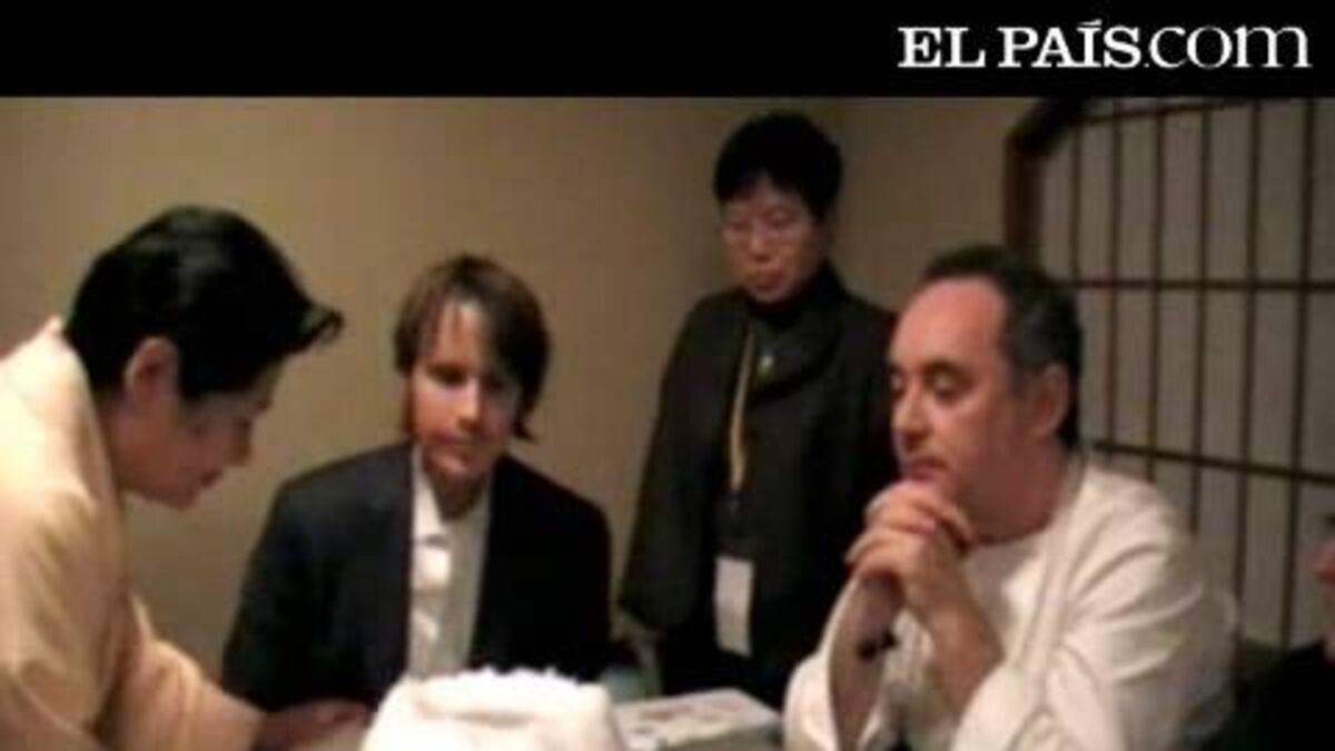 Uno de los platos simbólicos del menú de Mibu: los brotes primaverales que se abren camino en el hielo, escondía una sorpresa, una almeja de carne dulce. El matrimonio Ishida, Hiroyoshi y Tomiko, explican el juego de sabores a sus invitados.