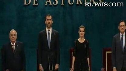 Los Príncipes de Asturias han presidido el comienzo de la ceremonia de entrega de premios con el tradicional himno de España tocado por gaiteros