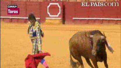 Pero todo había comenzado con los mejores augurios. Acababa de salir al ruedo el primero de la tarde y se hizo presente un instante mágico, una ráfaga de estética sublime. Julio Aparicio lo había recibido con una verónica y dos medias excepcionales. Volvió sobre sus pasos en el quite y dibujó otras dos verónicas excelsas, que cerró con dos medias de cartel y una larga airosa. Y héte aquí que Morante da un paso al frente, abre su capote y en la Maestranza no se oía una mosca: una verónica lenta, una segunda grandiosa y eterna y una media de oro puro. Sonó la música y la plaza quedó extasiada y conmovida. Después, se comprobó que a Aparicio le acompaña un ánimo muy corto, y Morante no llegó a entenderse con su primero, que lo desbordó, y abrevió ante el quinto, que se vino abajo.