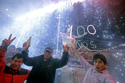 Los cuzqueños han comenzado las celebraciones la medianoche. Machu Picchu es su 'joya de la corona' a pesar de los numerosos sitios arqueológicos incas que se pueden visitar en ese departamento ubicado en el centrosur de PerúAFP / ANDINAMuchas teorías se han escrito sobre qué uso tenía la popular ciudad, desde las más antiguas que señalan que era la residencia de descanso del emperador, hasta las ideas actuales que destacan la importante función que cumplió como nexo entre las zonas andinas y amazónicas del Imperio incaAFP / ANDINAEl profesor estadounidense Hiram Bingham descubrió Machu Picchu al mundo el 24 de julio de 1911. Le tomó tres años quitar la maleza que cubría a la ciudadela y excavar las tumbas para tratar de descubrir el por qué de esas maravillosas construcciones. 100 años después continúa el misterio.AFP / ANDINAMachu Picchu significa Montaña Vieja, en quechua. Con sus cerca de 800.000 visitantes en 2010, supone el 70% de los ingresos turísticos del Perú. "Uno puede que no se conozca Perú, pero siempre habla de Machu Picchu como uno de los puntos más importantes de Suramérica", opinó el director del Parque Arqueológico de Machu Picchu, Fernando Astete.AFP / ANDINAAunque la construcción se inició, según las dataciones de carbono 14, hacia 1430 -unos 100 años antes de la llegada de los conquistadores españoles-, cuando fue abandonada aún continuaban los trabajos, como muestran la presencia de muros en proceso de pulido y rampas para el transporte de piedras aún por cortar.CHRIS BOURONCLE (AFP)El director del Parque Arqueológico de Machu Picchu, Fernande Astete, afirma que Machu Picchu es una ciudad a medio camino que servía como centro político, religioso y administrativo. Lo que aún no se ha podido confirmar es por qué la cuidadela parece haber sido abandonada de improvisoCHRIS BOURONCLE (AFP)El presidente saliente de Perú, Alan García, viaja a Machu Picchu para asistir a la ceremonia de celebración del centenario de la "ciudad perdida de los incas". Habrá un concierto y juego de luces durante el evento que la Unesco pidió fuese breve y con poca afluencia de visitantes para resguardar la conservación de la ciudadela, declarada patrimonio de la humanidad en 1983APEntre los actos de celebración está la realización de una ceremonia llamada Tinkay. Un actor encarna al inca Pachacútec que realiza el saludo a los cuatro suyos, en los que dividía el Imperio inca: Chinchaysuyo (región norte), Antisuyo (región noreste), Collasuyo (región sur) y Contisuyo (región suroeste). A través de esta tradicional ceremonia se llevará a cabo una ofrenda a la pachamama o madre tierra.AFPEl Inca fue, junto a sus sacerdotes, el encargado de dirigir la ceremonia, en la que realizó ofrendas, entre ellas una vicuña, a los diferentes Apus de la zona, las montañas que en la cultura andina tienen carácter de divinidad y entre los que se incluye la montaña que da nombre a las ruinas.AFPLa bandera inca ondea contra el cielo azul el día de la ceremonia de celebración del centenario del descubrimiento al mundo de Machu Picchu. El Tahuantinsuyo, o territorio inca, con sus dos millones de kilómetros cuadrados, fue el dominio más extenso de la América precolombinaAFP / ANDINA