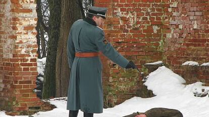 Un soldado de la División Azul observa un cementerio nevado sobre una colina. Las cruces de madera con inscripciones recientes pintadas a mano y una iglesia rompen el paisaje blanco. El soldado es Juan Diego Botto, protagonista de Silencio en la nieve. Es la primera secuencia que se rueda después de comer y el termómetro en este paraje a las afueras de Vilna (Lituania), que en semanas anteriores llegó a menos veintimucho, ronda los cero grados. Mientras una veintena de técnicos preparan la escena, Gerardo Herrero, director de la película, recorre con paso parsimonioso la distancia que separa la posición de la cámara del actor asentando cada pisada en el suelo helado. Da alguna indicación a Botto y vuelve tras sus pasos. Queda poca luz y hay que aprovecharla.