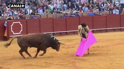Y no se la esperaba porque la corrida salió chica, sin cara, muy blanda y descastada. El primer toro de Mora, de 560 kilos de peso, era un chotillo que nunca debió saltar al ruedo sevillano. Pero así están las cosas: todos los aficionados pendientes de los antitaurinos y no entienden que los grandes enemigos de la fiesta están en ella. Mora llegó a brindar este toro a la concurrencia, con lo que demostró que no sabe que las birrias miserables no se dedican. Le dio muchos pases insulsos, siempre encorvado, y no supo que aquel espectáculo vergonzoso era indigno de esta fiesta.