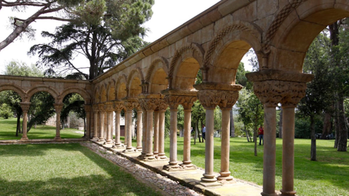 El claustro es una impresionante construcción envuelta en pinos. En uno de sus laterales hay una piscina. Los pilares son de proporciones enormes y el estado de conservación en apariencia es perfecto, pese a los problemas de erosión por su exposición al viento. El claustro consta de un tejadillo para protegerlo de la lluvia.