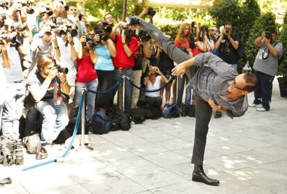 El guardaespaldas Pepe y sus compañeros reaccionan como el rayo cuando Van Damme se lanza hacia la verja del jardín, donde un centenar de fans gritan eufóricos. El belga firma fotos, libros, posters... En un Mercadona de Barcelona trabaja Juan Antonio López, de 23 años. El martes hizo el turno de noche. Al día siguiente cogió el avión (500 euros de billete) y aquí está. Pertenece al Van Damme Forum, un club de fans, y lleva siete años practicando kick boxing: “El me inspiró. Este es uno de los días más felices de mi vida”. Por la noche les aguarda la premiere en la Gran Vía. Todos tienen entrada.