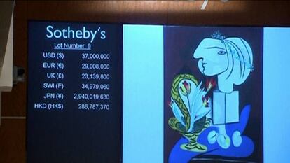 Tres obras de Pablo Picasso se vendieron ayer en la subasta de la casa Sotheby's por valor de 64,3 millones de dólares (más de 50 millones de euros): Nature morte aux tulipes (que representa a una de las amantes del pintor), se vendió por 37 millones (29 millones de euros), Femme à la fenêtre por 15,3 millones (unos 12 millones de euros) y Le viol, por 12 millones de dólares (más de 9 millones de euros). Son cifras de una subasta otoñal con resultados modestos.