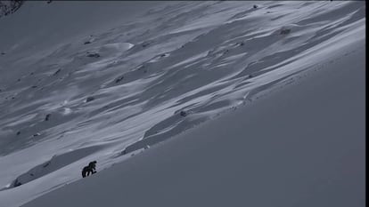 “Vigier”, continúa Vallhonrat, “debió llevar un ejército de gente que subió el material cargado en mulas. Con caballos sería imposible porque el terreno es muy escarpado. Seguramente, el equipo pesaba más de 100 kilos. Él hizo esas dos fotos y se fue”. Los trayectos hoy son más sencillos, pero las decisiones más complicadas. En el último año y medio Vallhonrat ha subido unas 25 veces a la montaña. Acompañado de Concha, su pareja, una experta alpinista, y un ayudante, van cargados a veces hasta con 15 kilos de peso. Han seguido hasta 30 itinerarios, pero solo han tomado fotografías en 19. “Uno parte de un proyecto mental, pero al final todo tiene que ver con la experiencia física, con el frío, con el viento, con el peso de la mochila... Algo de lo que nunca se puede escapar”. Tomó una media de tres fotos por viaje y de las 100 finales seleccionó las 14 que ahora cierran el proyecto. “A veces subía y si la luz no era líquida me tomaba un bocadillo, dormía, y volvía a bajar”.