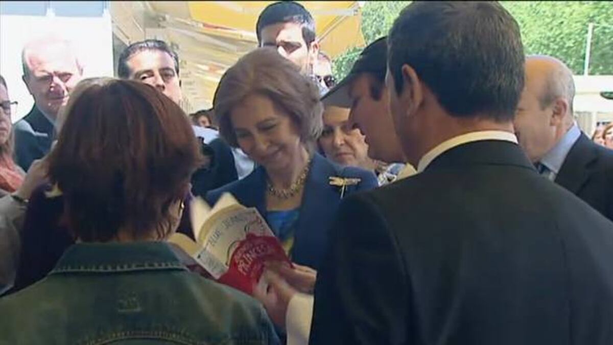 Doña Sofía abre la cita librera y descubre un libro suyo. Los gritos contra la Casa Real y el Gobierno se mezclaron con los de apoyo a la reina
