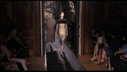 Las ocurrencias de Jean Paul Gaultier durante 35 años han sido el sujeto de una retrospectiva que, según la compañía, ha sido vista por un millón de personas en varios museos del mundo desde su inauguración en Montreal en 2011. En España, recaló en la Fundación Mapfre de Madrid. En el desfile de ayer, Gaultier concibió mujeres pantera, que se visten con falsos motivos felinos. Se trata de trampantojos de la piel de los animales realizados con bordados de cristales o con plumas pintadas. En el fondo, una excusa para revisar sus obsesiones de siempre. La desbordante creatividad de Gaultier no buscaba el museo cuando recuperó los corsés para las mujeres modernas, pero ha terminado en él por su capacidad expresiva. Como decía Yves Saint Laurent, maestro de la costura y apasionado coleccionista, “la moda no es un arte, pero necesita un artista para existir”.