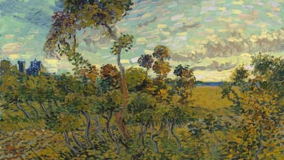 Puesta de sol en Montmajour es una obra grande, de 93,3 x 73,3 centímetros. “Es una rareza poder añadir un nuevo título al catálogo del artista”, dijo Axel Rüger, director del museo, al mostrar el lienzo. El centro, experto en encontrar nuevos ángulos a la marca Van Gogh, preparó la presentación con cuidado. Incluso reforzó la intriga cubriendo la obra con una tela. Como si estuviera aún en el taller del pintor.