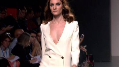 La diseñadora barcelonesa Teresa Helbig ha hecho la ruta norteamericana en su propuesta para la próxima primavera. Eso sí, viaja desde los años 60 y fijándose en el club de la B (Jane Birkin, David Bowie, Marisa Berenson o Bianca Jagger). En su colección destacan los vestidos largos en seda con detalles en crochet, crepé (tratado, en algunos casos con piel de ángel para conseguir una textura más gruesa) y, como novedad, la tela vaquera. Los zapatos, también en denim, son obra de Serena Whitehaven.