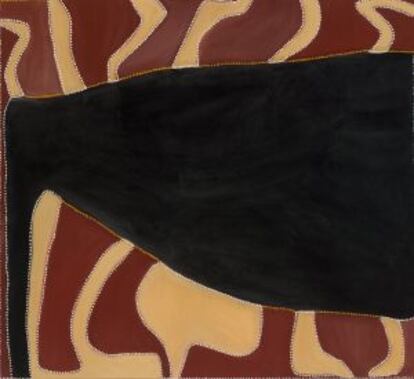 El despliegue de dibujos, fotografías, instalaciones multimedia pero sobre todo pintura —posible gracias al copatrocinio de la Galería Nacional de Australia— arranca con el mundo aborigen de los sueños. Los habitantes originales de Australia plasmaron su narrativa sobre la creación y sus mitos totémicos —esencialmente de carácter religioso— con pigmentos minerales que aplicaban directamente al suelo o a las rocas. Porque el arte aborigen versa sobre la tierra y se realiza con la tierra misma. Sus herederos, autores como el reconocido Rover Thomas, recuperan y reivindican en el siglo XX ese mapa ancestral de un pueblo con 50.000 años de historia en sus lienzos de tela. Varios de los visitantes que escruten la muestra desde el próximo sábado hasta el 8 de diciembre reconocerán los tradicionales y coloridos diseños a base de pequeños puntos que tantos autores de otras latitudes han venido copiando y comercializando en décadas recientes. Pero probablemente les sorprenda la evolución de ese arte aborigen y la influencia en él de otros movimientos en la era moderna, expresada en el estilo abstracto de firmas como la de Emily Kame Kngwarreye.