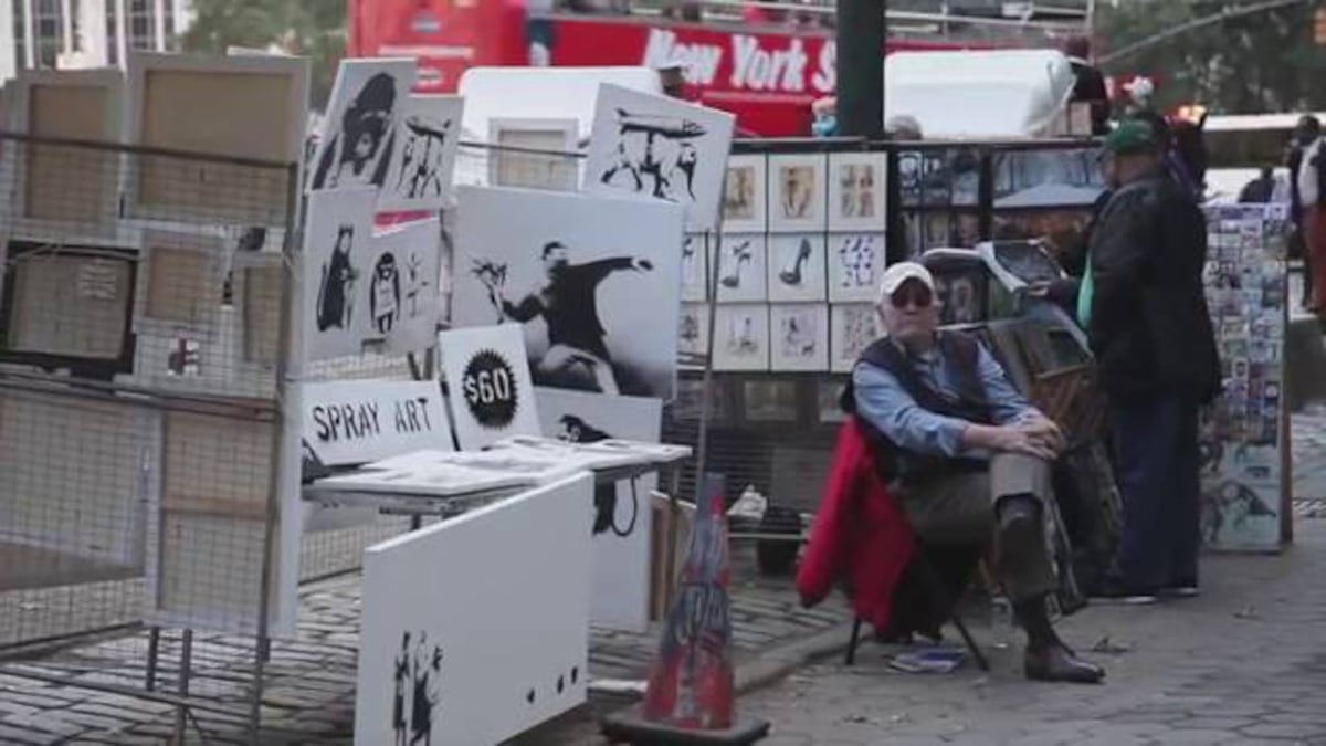 El artista británico vende su obra por medio de un comerciante ambulante en las calles de Nueva York y lo graba