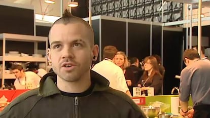 Los cocineros llevan camisa blanca. Salvo uno. Y los ponentes relatan, ya sea en vídeo o en el escenario, sus últimas ocurrencias a un público que escucha y aplaude sentado en las butacas. Salvo uno. Porque en cuanto apareció en Madrid Fusión David Muñoz, con su cresta, su camiseta negra y sus zapatillas naranjas, levantó una barra como la de su restaurante madrileño StreetXo, subió la música y pidió 10 voluntarios para ir probando los platos que él y su equipo prepararían.