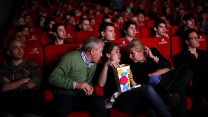 A esa hora, en Madrid, en los Princesa, Renoir Plaza de España y Golem la sensación era bastante mejor que un lunes normal, y bastante peor que en la anterior edición de la fiesta. Eso sí, se habían multiplicado los estajanovistas decididos a ver hasta ocho películas en tres días. “100” al año aseguraba ver Jesús de las Heras, que ayer optó por Ocho apellidos vascos. Este trabajador del metro de 48 años era de los pocos en cantar fuera del rabioso coro general: la entrada habitual no es tan cara, según él, al menos comparada con los cócteles.