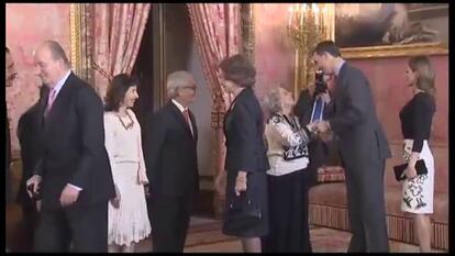 La abuela Elena Poniatowska llega sonriendo con siete nietos, repasa la cartilla a la cultura, la política, América Latina y reivindica su profesión de periodista, y se va escoltada por dos de sus nietos, uno en cada mano.
