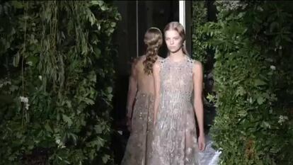 Una siempre cuenta con encontrar una determinada estética en el trabajo de Maria Grazia Chiuri y Pierpaolo Piccioli (de 49 y 46 años) en Valentino. Tras su incursión en el mundo de la ópera en enero, los italianos se fijan en la sensualidad esteticista del movimiento prerrafaelista de Dante Gabriel Rossetti y en la temática clásica de Lawrence Alma-Tadema. Obras que hoy pueden verse en la exposición Alma-Tadema y la pintura victoriana en la Colección Pérez Simón del Museo Thyssen y que conducen a una colección exquisita y llena de claroscuros, de esas que admiten poca discusión sobre su hermosura. Igual que aquel movimiento se opuso al canon imperante en la Inglaterra de 1848 para reclamar la autenticidad de la pintura anterior a Rafael y Miguel Ángel, Chiuri y Piccioli reivindican una alta costura que no se fija en el mundano presente, sino en un pasado mitificado a partir del que construir algo nuevo. Es la misma idea que presidió los desfiles de Dior y Chanel, que aquí llega incluso a utilizar tapices del siglo XVII como material para las piezas.