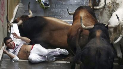 Todo había comenzado, como cada mañana, con ese cohete que suena y estremece en toda la ciudad, precede al cerrojazo que abre la puerta de los sustos de los Corrales del Gas, y allí cerca, a unos pocos metros, esperan los primeros mozos apretados para espantar el miedo.