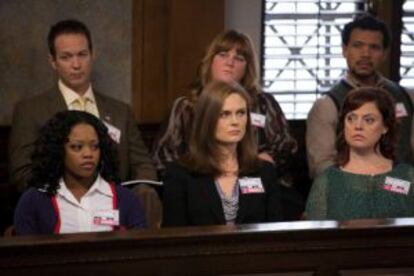 Brennan y Booth se enfrentan esta noche a dos complicados casos en Bones. Convertidos en marido y mujer y de vuelta de su atípica luna de miel en Argentina, Brennan es seleccionada para participar en un jurado popular en un caso de asesinato. Con su peculiar personalidad, apelará a la objetividad para dar con el culpable. En la segunda entrega, el equipo del Jeffersonian investiga la muerte de un científico especializado en alimentación.