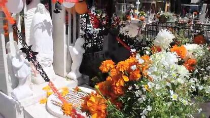Los mariachis entonan Amor eterno, de Juan Gabriel, por otro lado se escuchan las palas removiendo la tierra, uno que otro reggaetón, globos y juguetes en las tumbas de los más pequeños, y el choque de dos vasos que brindan por la presencia de aquellos a los que se les permite volver una vez al año con la condición de regresar hacia las tres de la tarde del 2 de noviembre.